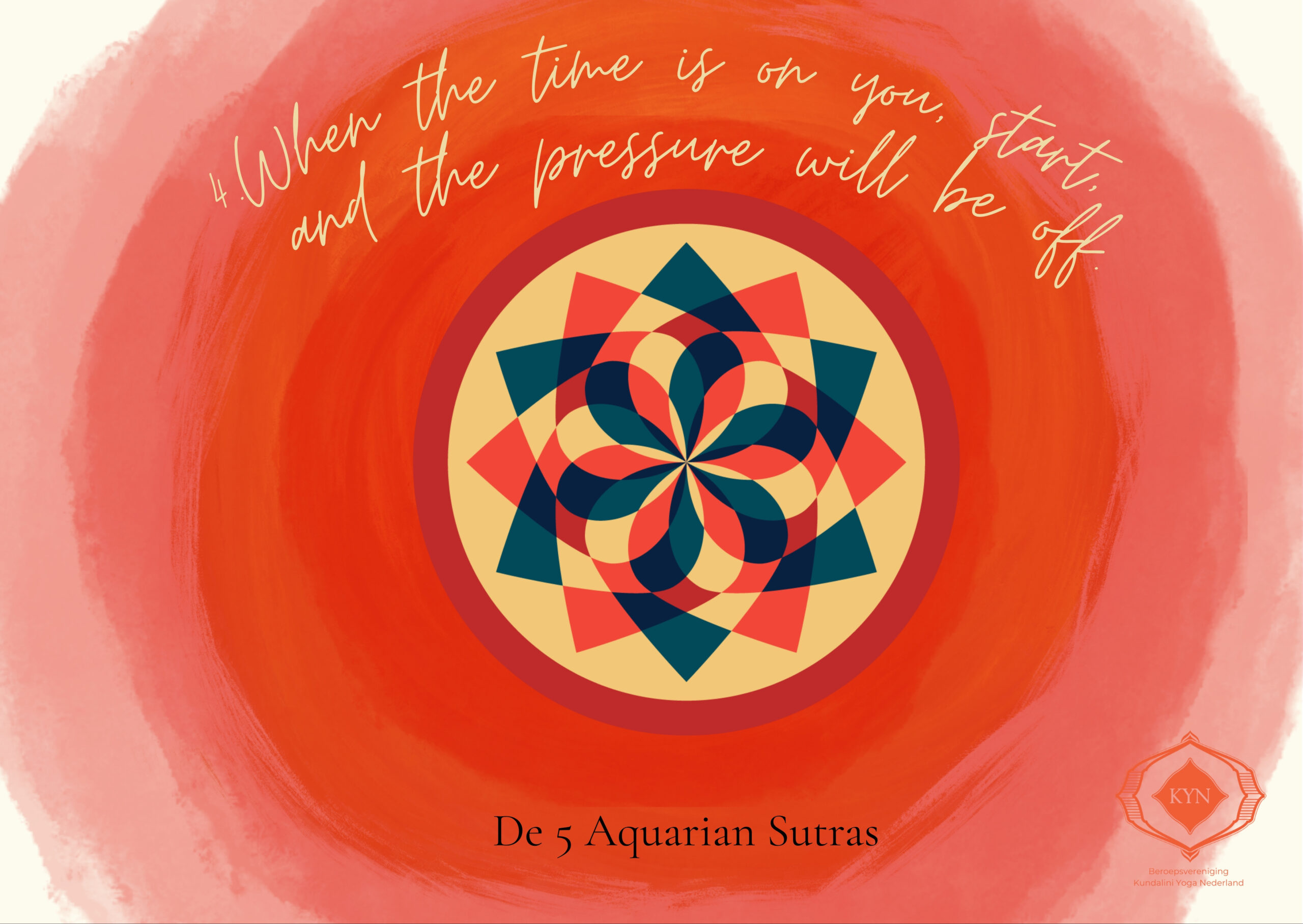 Tijd is in de Karam Kriya ingedeeld bij de 2. Druk/pressure kun je op verschillende manieren bekijken, maar als ik het als energie+druk beschouw hoort het bij de 8. Twee en Acht vormen samen een team (alles wat opgeteld 10 is). De 2-8-as staat voor de energie van het dagelijkse, van de moeder, voor healing. Als ik deze sutra koppel aan de twee-□ en acht-□, dan opent een poort naar meer begrip voor deze sutra. En ook naar meer studie! De helpende vraag hierbij is Hóe? Hoe ga ik verder? Hoe voel ik me als ik hierdoor ben? Hoe ga ik dit aanpakken? Hoe ga ik de druk verminderen?